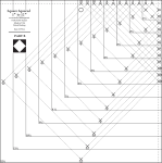| Finally a tool that simplifies the construction of the Diamond Square unit without having to use paper foundation piecing. The Square Squared is an all-in-one tool that gives you a window template for accurately cutting the center square, a chart printed right on the ruler for the recommended size to cut the triangles sewn to the four sides of the center square and a trim down section on the ruler that simplifies the alignment of ruler to fabric unit and allows everyone to clean up the unit to a precise measurement every time. You can see the tool demonstrated on our free online video demonstration (see on YouTube). This unit is a tricky one to get accurate, but with the Square Squared tool and technique of oversizing and trimming down you’ll have far better success than with any other product on the market. |