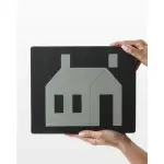 These pieces are set right up against one another on the die to save fabric. When you assemble the house on the project, though, pull the front forward and add the second chimney above the resulting space.